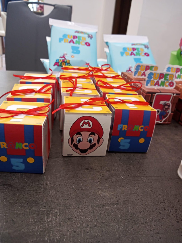 Torta 15 bolle di sapone 15 spiedini marshmallow 15 scatoline di caramelle 15 scatoline di smarties 15 patatine 1 personaggio grande palloncino ad elio ed 1 numero da centro tavola tutto personalizzato